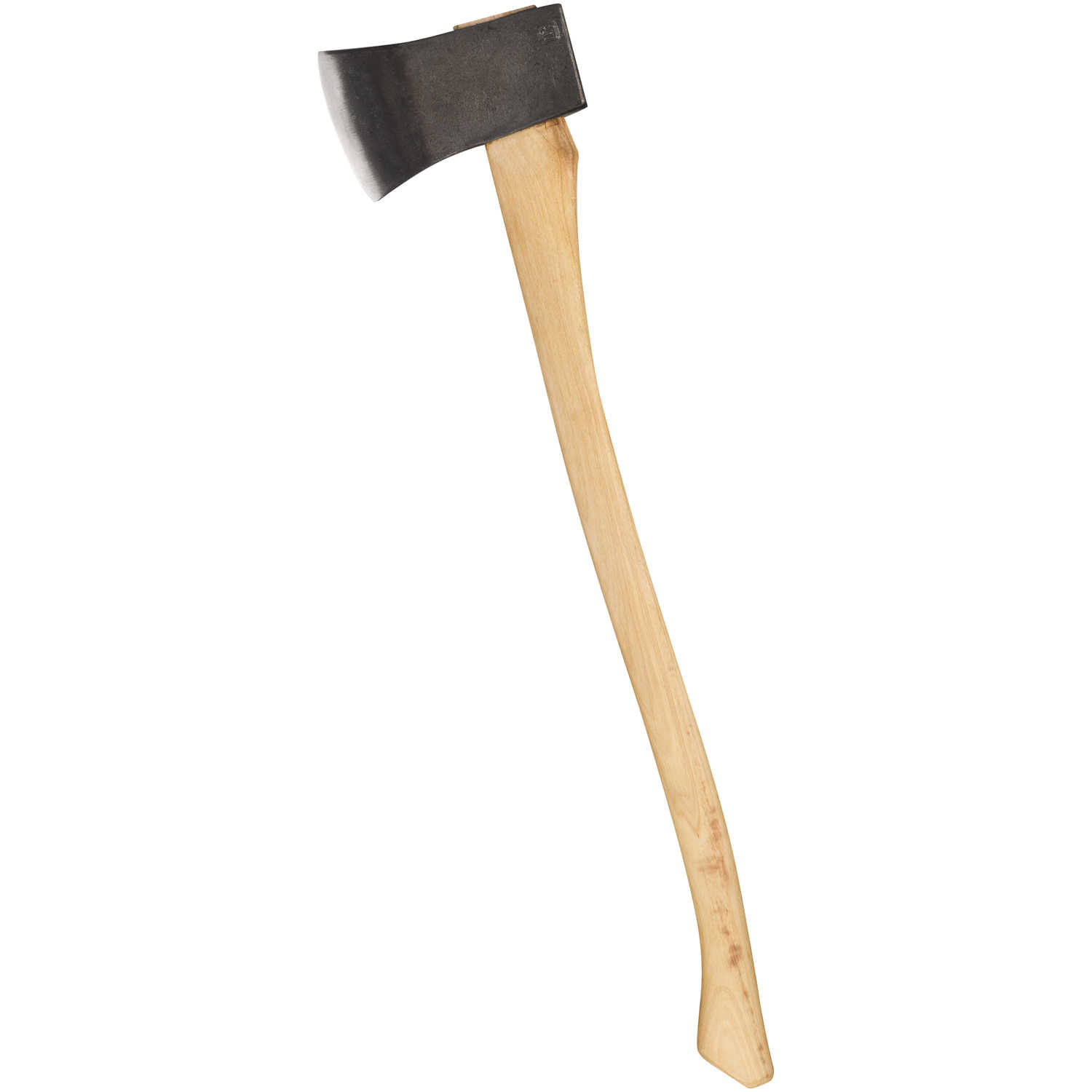 Mid-sized axes feature a 2.25 lb. Dayton axe head with a curved hickory handle. Forged tool steel head. Hand sharpened, tapered bit for cutting and light splitting. Axe head is hydraulically seated onto handle and secured with a traditional double wedge system. Made in USA.