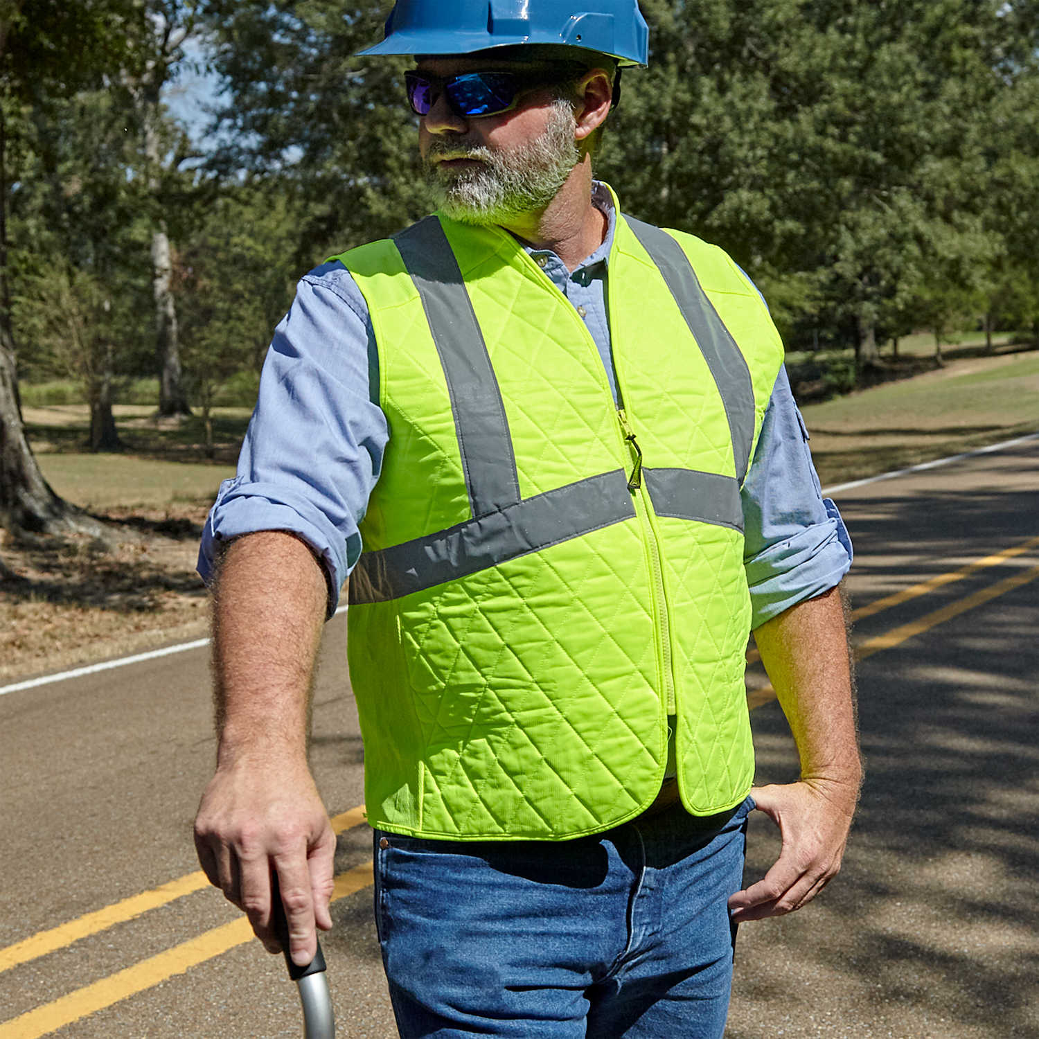 Just soak this vest in water for 1 to 3 minutes to activate its cooling power for 5 to 10 hours. The HyperKewl™ Plus fabric offers rapid absorption, stable water storage, and controlled evaporation to cool you up to 15°F below the ambient temperature. Wicking Birdseye Panels provide breathability. Features one interior pocket and a zipper closure. Machine washable. Meets ANSI 107 Type R Class 2.